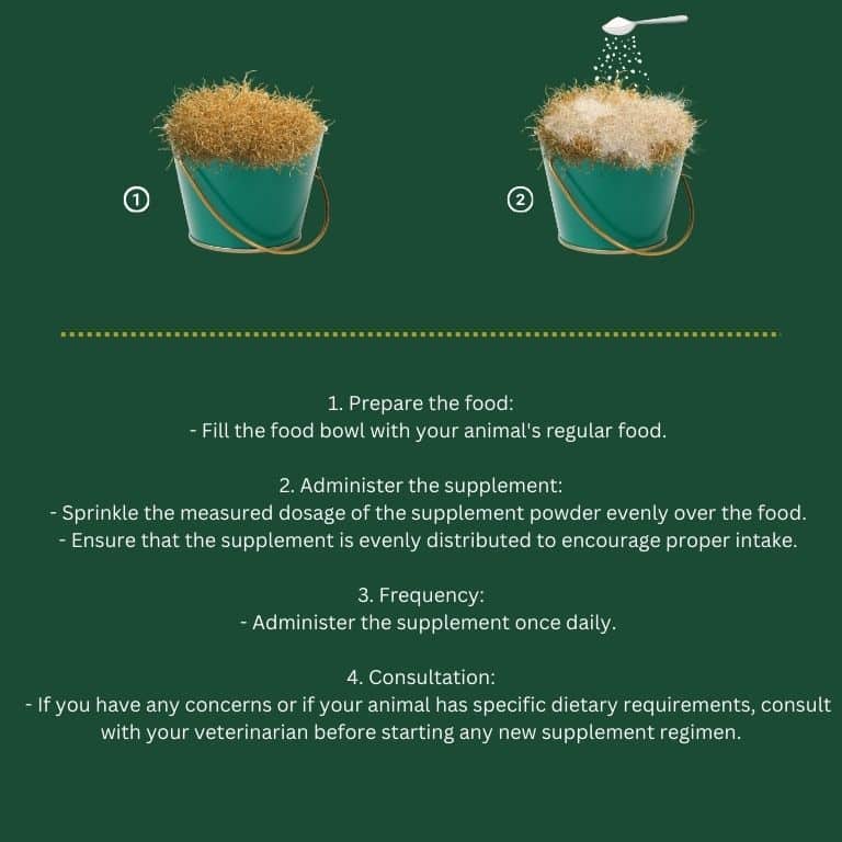 • اگر از غذای خشک استفاده می‌کنید، قبل از افزودن مکمل، آن را کمی مرطوب کنید.